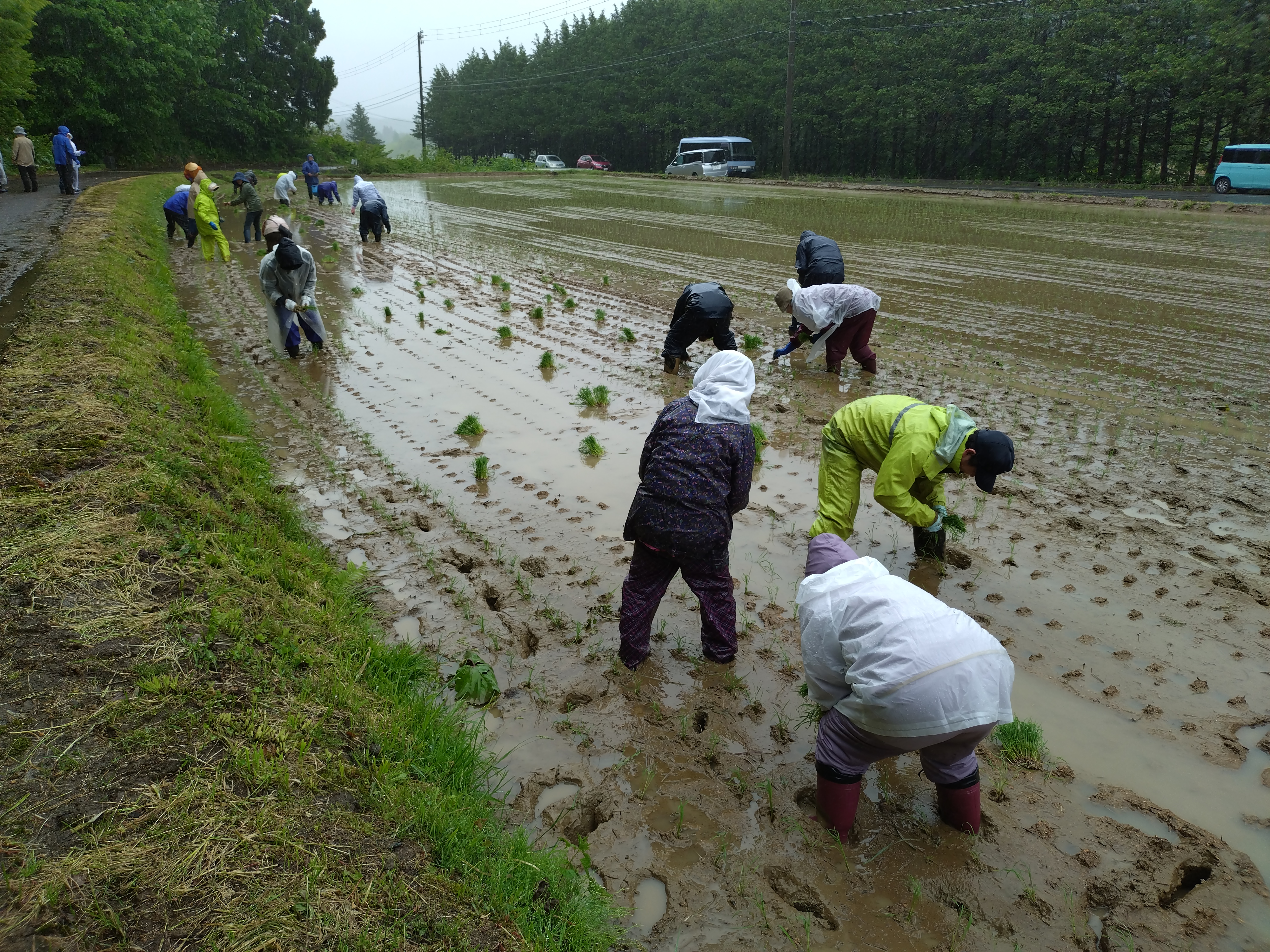 こうして関わることで、「あの時に植えた苗は無事に成長しているだろうか」と気になるものだ。この千年田の前を通る度に成長を願い、また自分も成長していきたい。今年も、みちのく農園の協力と多くの教信徒にご奉仕を賜り、田植えを行うことができ、感謝に尽きない。 (事務局 記)